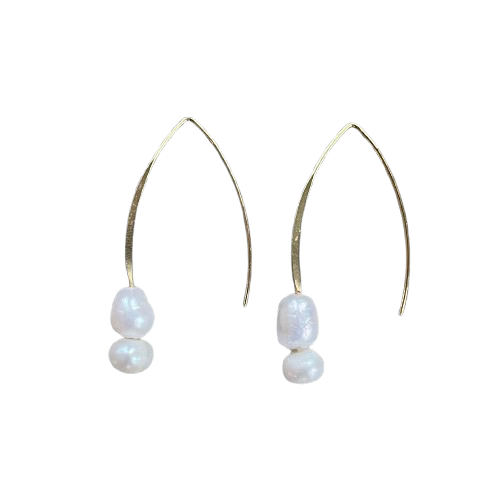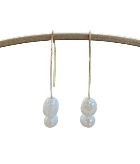 Bøjle øreringe, -elegant og tidløst håndlavet børstet guldringe med to x to flotte ferskvandsperler.