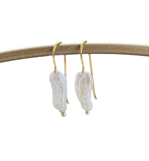 Bøjle øreringe, -elegant og tidløst håndlavet guld ørering med to flotte aflange ferskvandsperler.