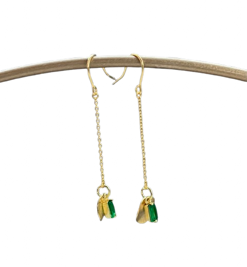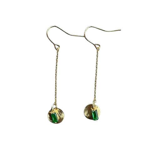 Kædeøreringe, elegant og tidløst håndlavet guld kædeøreringe med børstet guld cirkler og to flotte grønne zirkoner.
